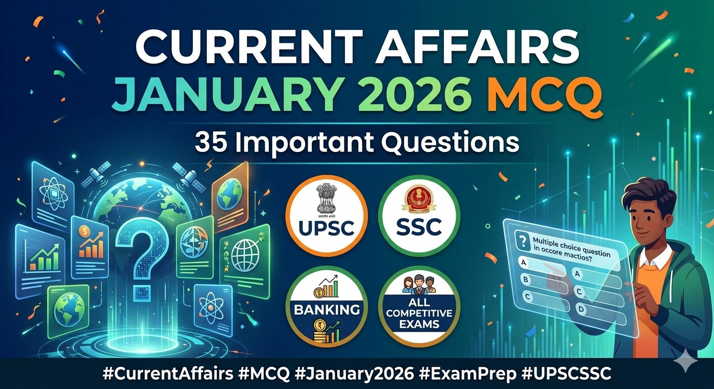 Tags: Current Affairs January 2026, MCQ for UPSC, SSC Current Affairs, Banking Exam GK, January 2026 GK Quiz, India Current Affairs 2026, Competitive Exam Preparation
